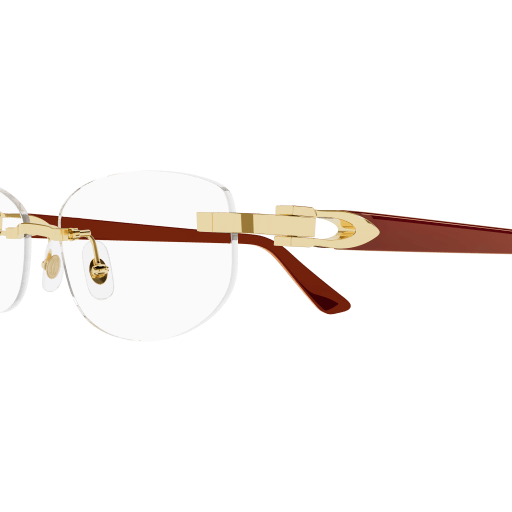 Contemporary yet sophisticated reinterpretation of the historical Décor C temple in combi version. Classic soft rectangular shape in rimless construction. Iconic Décor C detail perfectly inserted in the acetate temples as aesthetical and functional element of the hinge. Precious finish in gold combined with varied acetate colours.