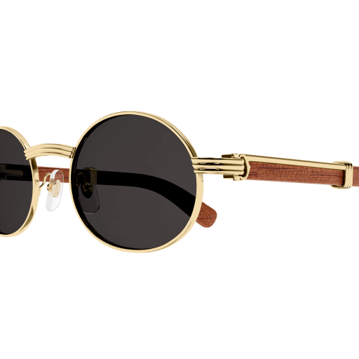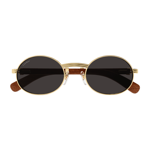 Additional shape of the existing Première aesthetic in wood or horn with the renowned iconic C de Cartier and Godron detail enriching the elegant temples. New narrow oval shape in full rim construction inspired by the iconic vintage Giverny style to ensure a distinctive look. Double C logo plaque on temple tips as elegant signature of the Maison. Precious finish in gold or platinum.