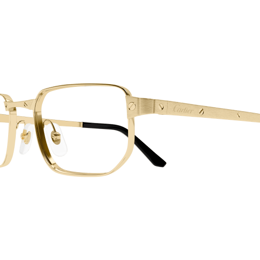 Easy-to-wear rectangular shape in full-rim construction to complete the Santos Classic family with a bold design. Metal hinge enriched with a sophisticated faceted detail inspired by the iconic Santos watch’s metal strap and the recognizable Santos temples are embellished by the Santos screws décor. Acetate temple tips to ensure comfortability. Precious finish in gold or platinum with Cartier logo engraved on the temples.