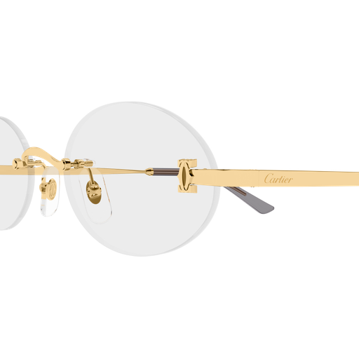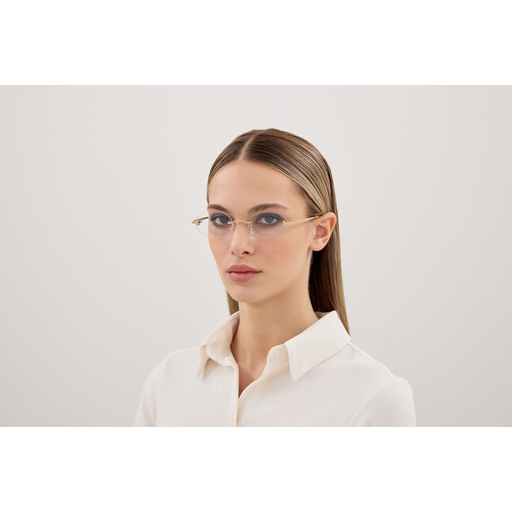 Light and modern Double C metal interpretation with the iconic logo detail on the front. Unisex narrow oval shape in rimless construction for a contemporary look. Precious finish in gold or platinum combined with transparent acetate temple tips to guarantee comfort.