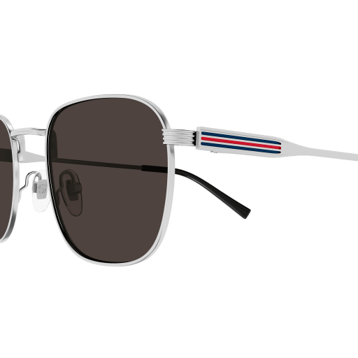 Commercial light metal styles with a sporty feel and web detail on temple. Squared shape. Gucci lettering logo – enameled web detail on the engraved lines on temple. Masculine yet cool and sporty colors.
