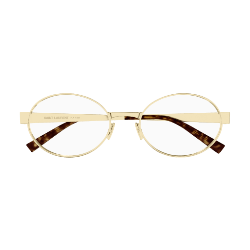A CLASSIC VINTAGE OVAL METAL OPTICAL STYLE, WITH A THICK METAL CONSTRUCTION, INSPIRED BY ANTONY VACCARELLO’S CREATIVE INPUT FOR WOAN SPRING 24 COLLECTION. A FASHION RIM METAL COMPLETING THE CURRENT OFFER AND RIDING THE METAL TREND. SAINT LAURENT LOGO LASER ENGRAVED ON BOTH METAL TEMPLE.